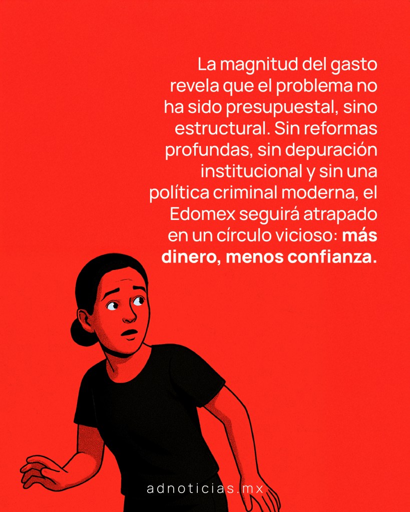 Más de 250 mil millones de pesos invertidos en seguridad no han bastado para que el Estado de México se sienta seguro. La magnitud del gasto revela que el problema no ha sido presupuestal, sino estructural. Sin reformas profundas, sin depuración institucional y sin una política criminal moderna, el Edomex seguirá atrapado en un círculo vicioso: más dinero, menos confianza.