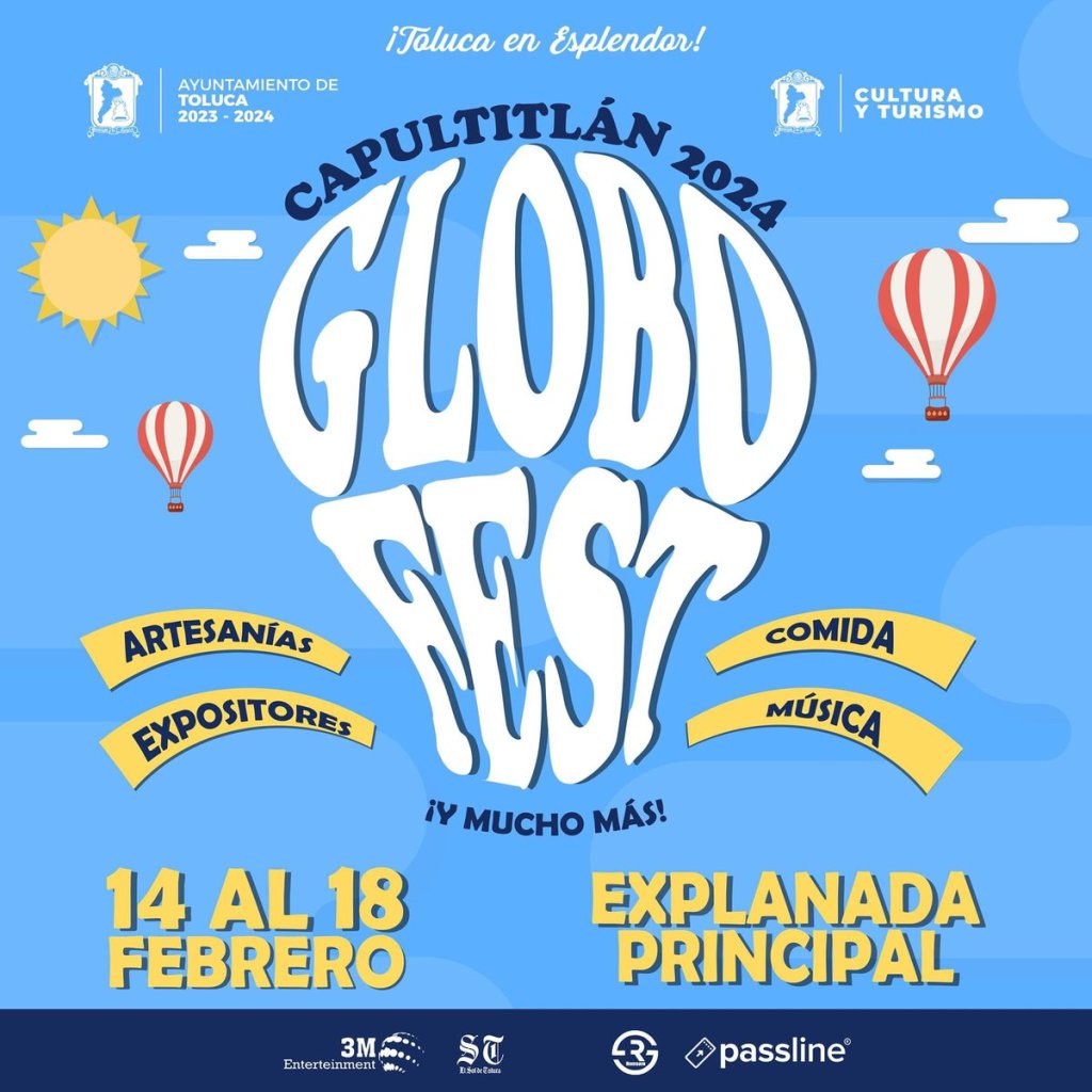 El Ayuntamiento de Toluca se complace en invitar a todos los ciudadanos al Globo Fest 2024, que se llevará a cabo del 14 al 18 de febrero en la explanada principal de la delegación Capultitlán.