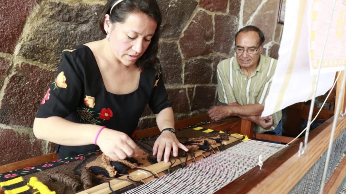 Con instrumentos como el bastidor, maestros del telar elaboran sarapes, suéteres, bufandas, gorros y muchas más prendas de vestir de alta calidad.
