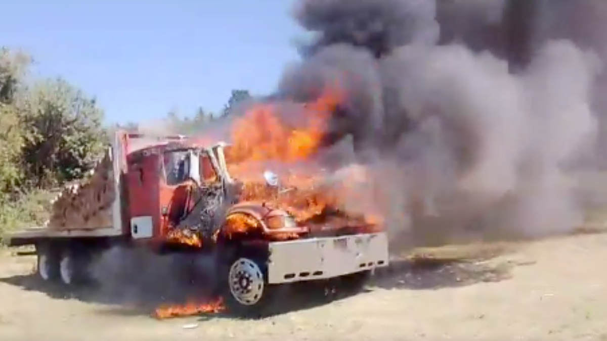 Pobladores queman camión de talamontes en Ocuilan