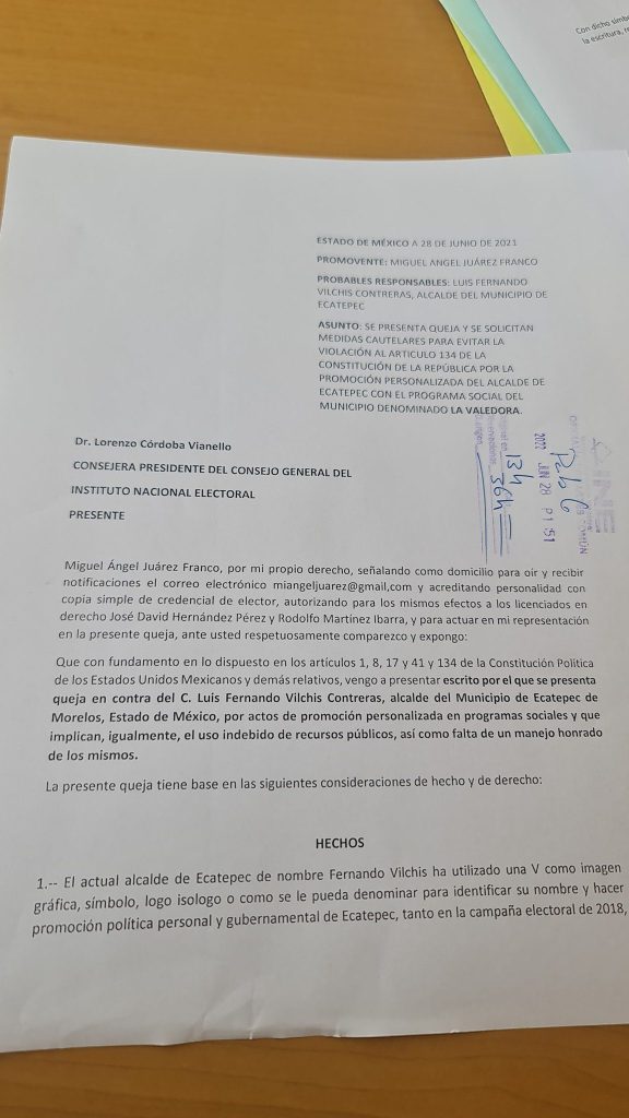 Ante esta situación, Miguel Ángel Juárez –exregidor de Ecatepec– interpuso una denuncia ante el Instituto Nacional Electoral (INE) por la promoción de imagen con fines electorales.