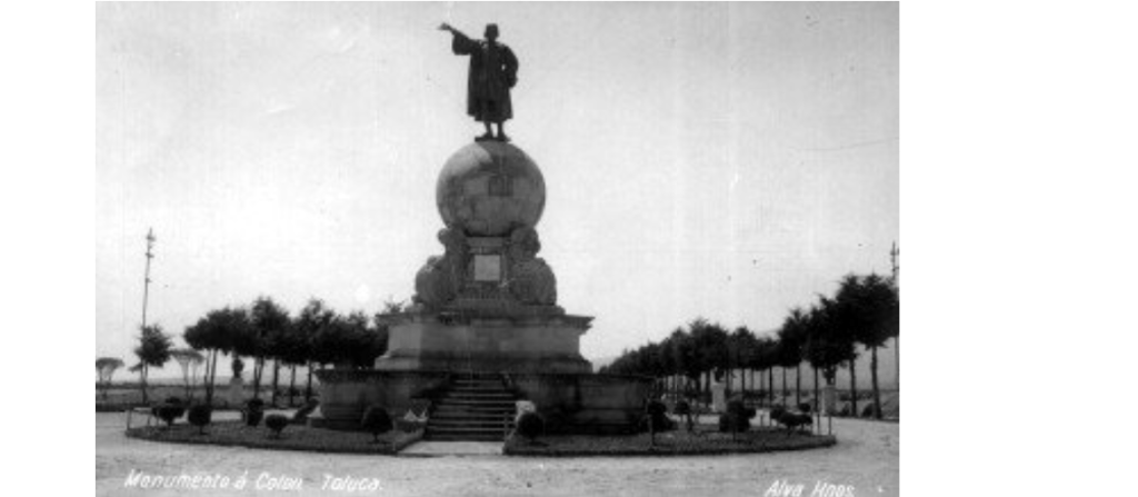 El monumento a Colón tiene cuatro metros de altura y pesa cuatro toneladas; fue esculpido y vaciado en bronce por el escultor Guillermo Cárdenas. La inauguración se realizó el 13 de octubre de 1900 durante una visita de Porfirio Díaz a la ciudad.