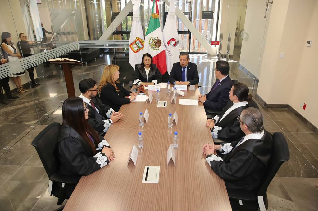 Ante el magistrado Fernando Díaz Juárez, presidente del Órgano de Administración Judicial, Macedo García refrendó su respeto y cooperación con el Tribunal de Disciplina Judicial que -refirió- tendrá que consolidar y fortalecer las bases de una institución libre de corrupción e inacción, precisando que es fundamental mantener la coordinación con el Tribunal Superior de Justicia y el Órgano de Administración Judicial.
