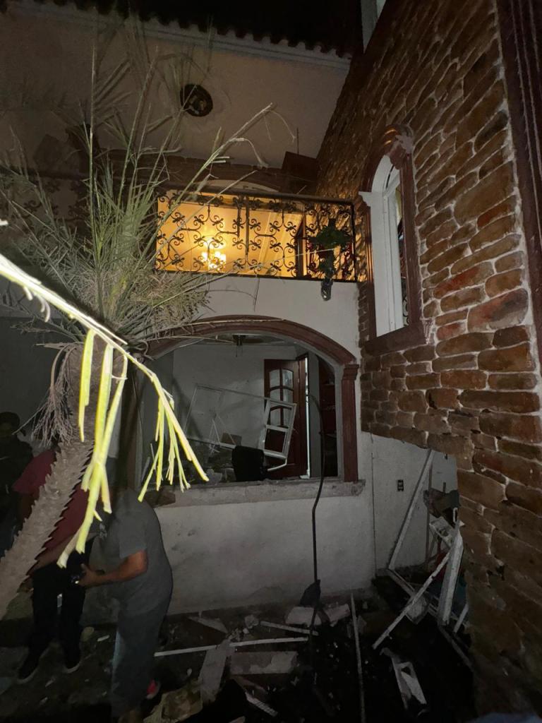 Se registraron daños en cancelería, vidrios, estructuras, muebles, electrodomésticos y otras pertenencias. En la revisión del domicilio fue identificado un hoyo en el jardín de la casa, donde tuvo su origen la explosión. Los peritos de la Fiscalía estatal encontraron en su registro restos de dos «artefactos explosivos improvisados».
