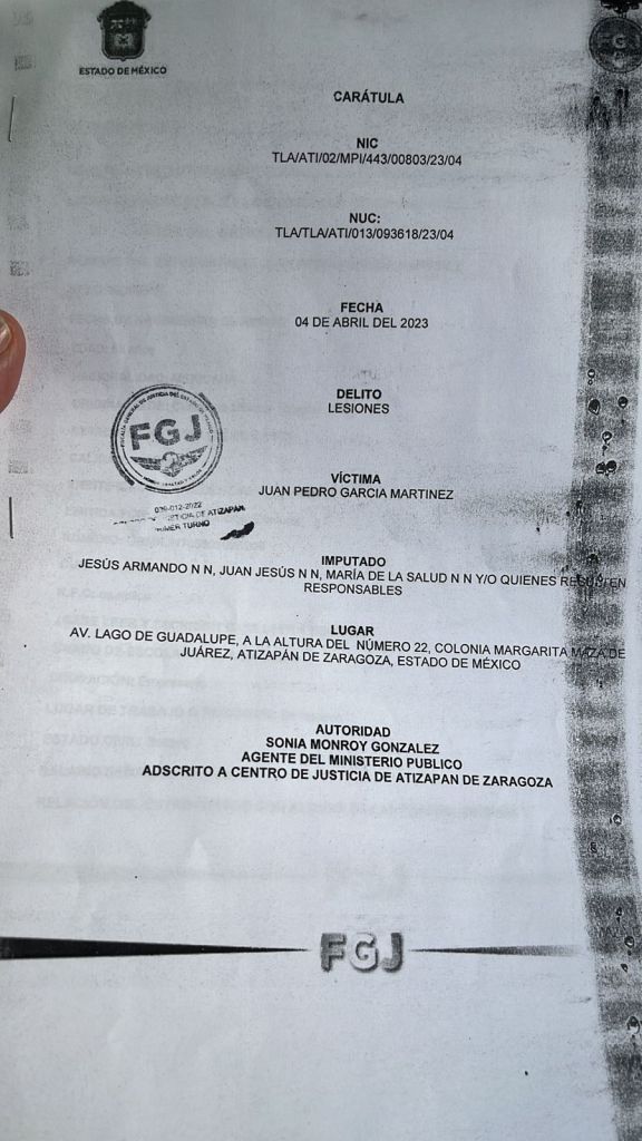 Juan Pedro García Martínez, operador político del PRI y el PAN, interpuso una denuncia por lesiones contra quien resulte responsable, luego de que lo evidenciaron golpeando a simpatizantes de Morena en Atizapán de Zaragoza.