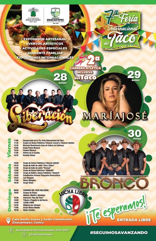 Si no sabes qué hacer en Toluca o alrededores para el último fin de semana de marzo, la Feria del Taco Zinacantepec 2025 es el plan perfecto. La 7ª edición de este evento gastronómico se llevará a cabo del viernes 28 al domingo 30 de marzo en la Plaza Cívica de Zinacantepec, con una experiencia llena de sabor, tradición y entretenimiento.