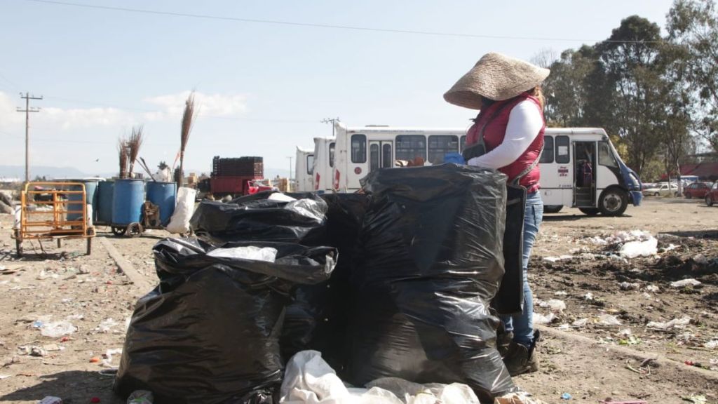 De 6 de la mañana a 7:30 de la noche, la señora Florina Rosales recolecta latas, botellas de plástico, hule y cartón en la Central de Abasto de Toluca, con un objetivo claro, llevar el sustento económico a su hogar.