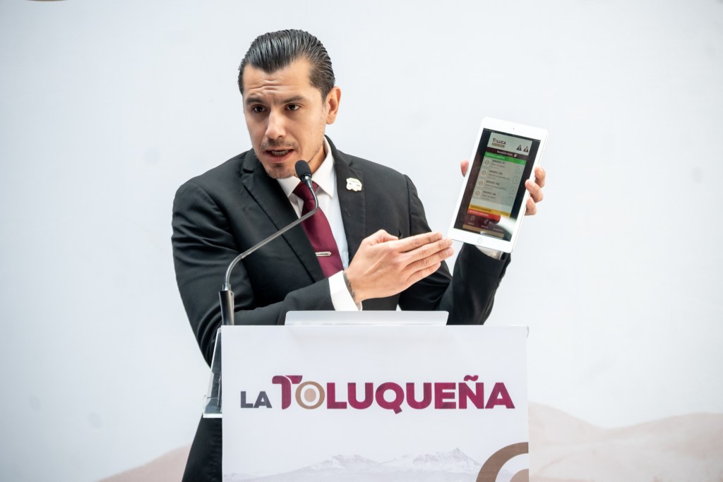 El presidente municipal de Toluca, Ricardo Moreno Bastida, presentó la nueva aplicación móvil Toluca en tus Manos, una herramienta digital que permitirá a las y los ciudadanos acceder, desde su celular, a 43 servicios públicos distribuidos en 12 áreas del ayuntamiento para obtener información y trámites.