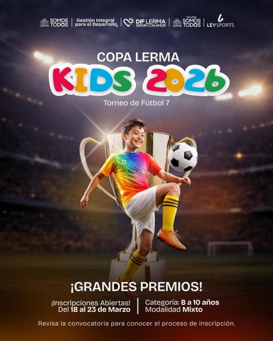 Con el objetivo de fomentar el deporte, fortalecer la convivencia familiar e impulsar el desarrollo de la niñez en el municipio, autoridades locales anunciaron la Copa Lerma Kids 2026, un torneo municipal de fútbol siete dirigido a niñas y niños de entre 8 y 10 años de edad.