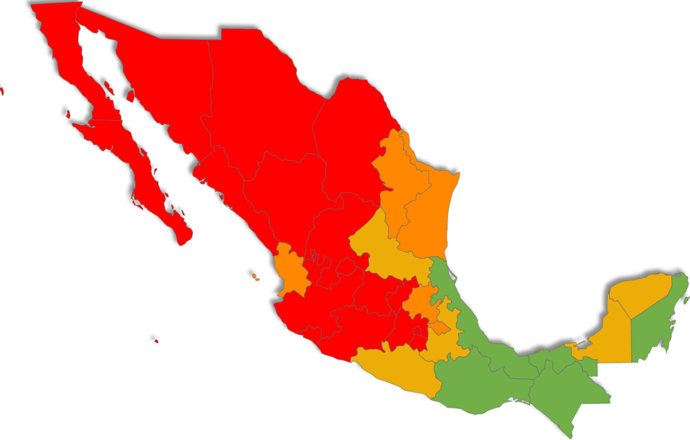 Por su parte, las entidades de Tamaulipas, Nuevo León, Hidalgo, Nayarit, Tlaxcala tiene un riesgo alto. Es decir, su probabilidad de llegar al estrés hídrico, está entre el 40 al 80 por ciento. En el caso de San Luis Potosí, Puebla, Campeche, Yucatán, Guerrero, su riesgo hídrico es medio, entre el 20 y el 40 por ciento.