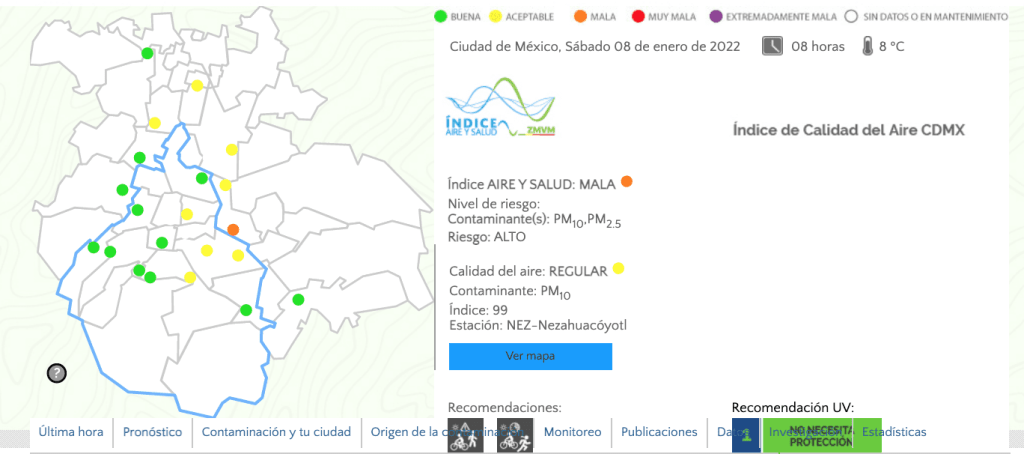 La Zona Metropolitana del Valle de Toluca tiene un índice de aire y salud malo con riesgo alto de contraer enfermedades; además el índice de radiación ultravioleta informa que no se necesita protección y se puede permanecer en el exterior. Las zonas más afectadas son San Cristobal Huichochitlán y Almoloya de Juárez.