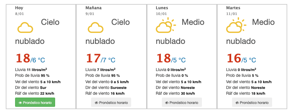 Este fin de semana se esperan lluvias y ráfagas de viento de hasta 22 km/h.