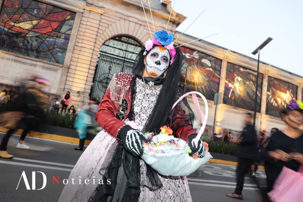 Catrinas, charros, diosas aztecas fueron algunos de los disfraces que se utilizaron en este desfile.