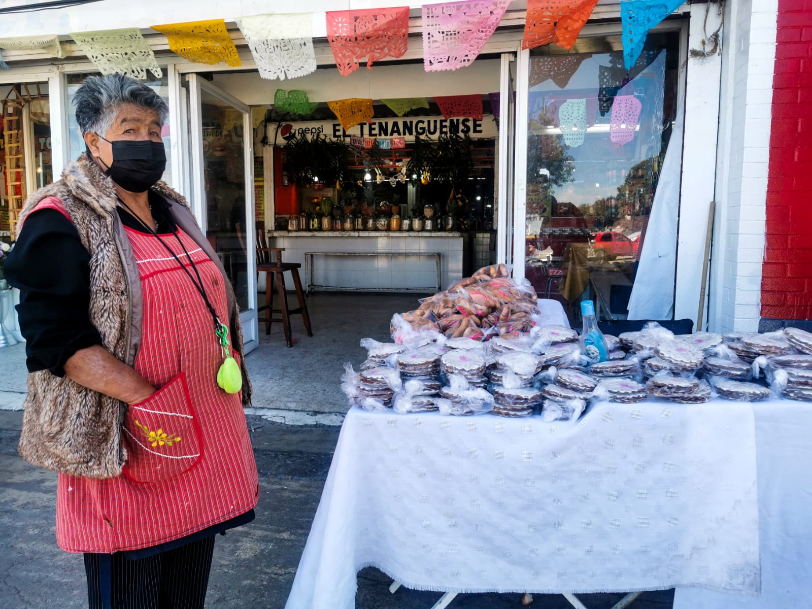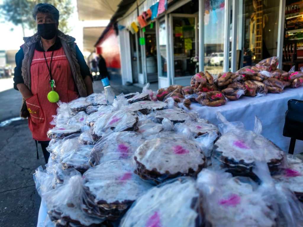 Explica doña Josefina Cuadros, comerciante informal de la tercera edad, que este 3 de noviembre se volvió a colocar en la explanada del mercado Juárez para buscar sumar algunas ventas de las tradicionales puchas y pan de figuras, una de las actividades con las que mantiene a su pequeña nieta.