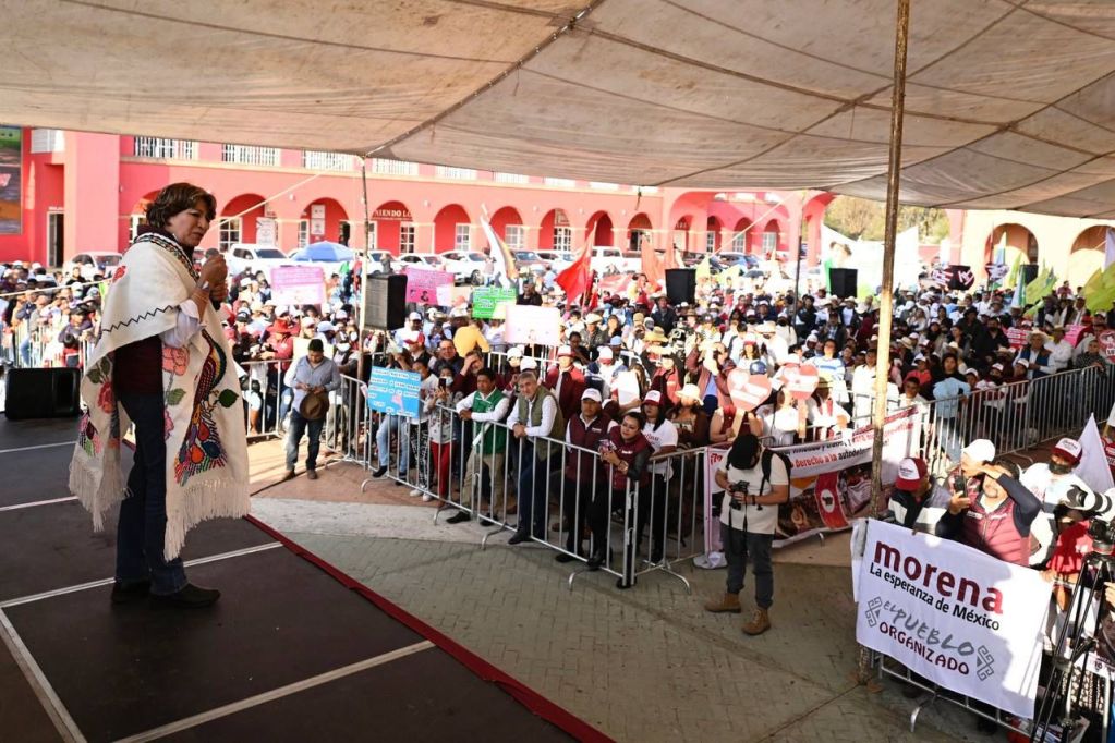 En su discurso, Delfina Gómez señaló que los ataques del «viejo régimen» se deben a que van hacia abajo en las encuestas. También advirtió que «ellos» ya no tienen el apoyo de la gente y por eso tienen miedo.