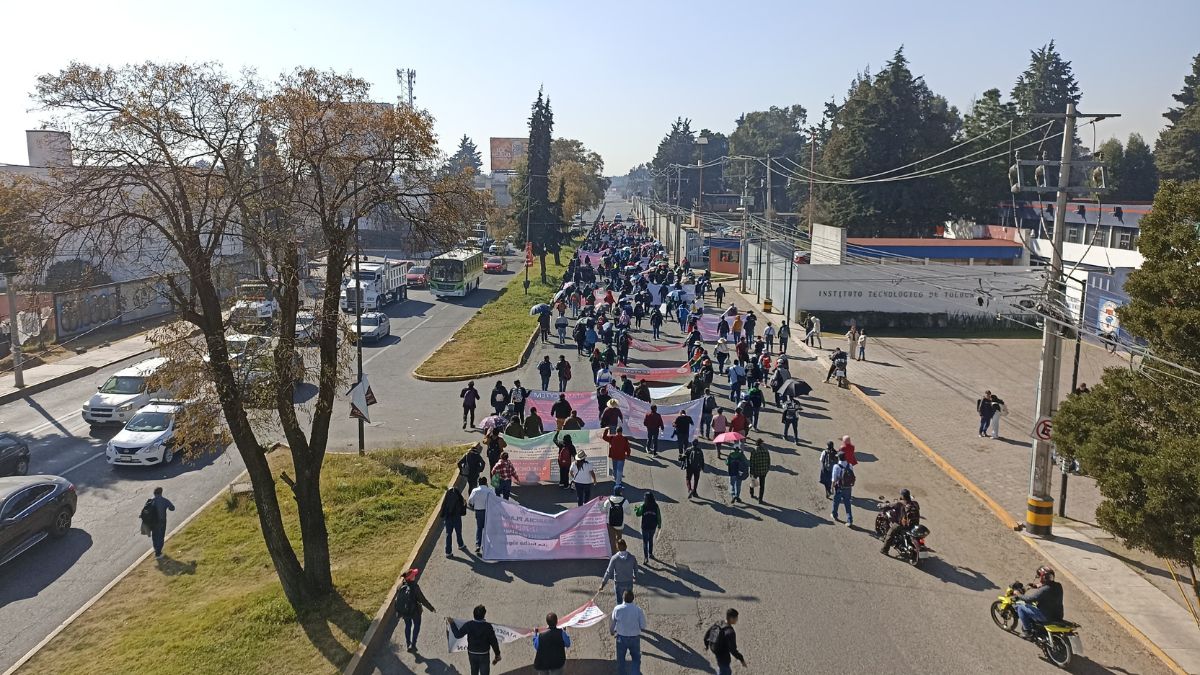 Los maestros y trabajadores administrativos del Colegio de Estudios Científicos y Tecnológicos del Estado de México (CECyTEM) protestaron en Metepec y otros municipios del Edomex para exigir pagos relacionados con homologación y renivelación salarial que se han pospuesto en múltiples ocasiones desde septiembre.