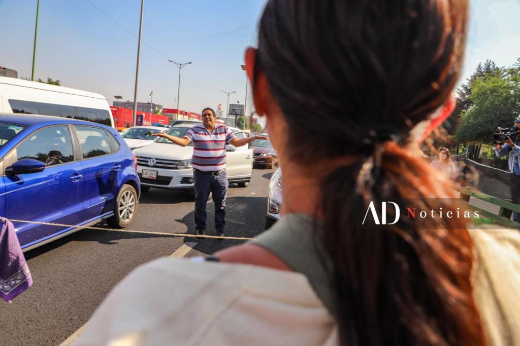 El bloqueo en ambos sentidos del Periférico comenzó a las 15:41 horas. Una policía estatal apoyó a las manifestantes a resguardar su seguridad. Mientras tanto, sus colegas policías le exigieron retirarse.