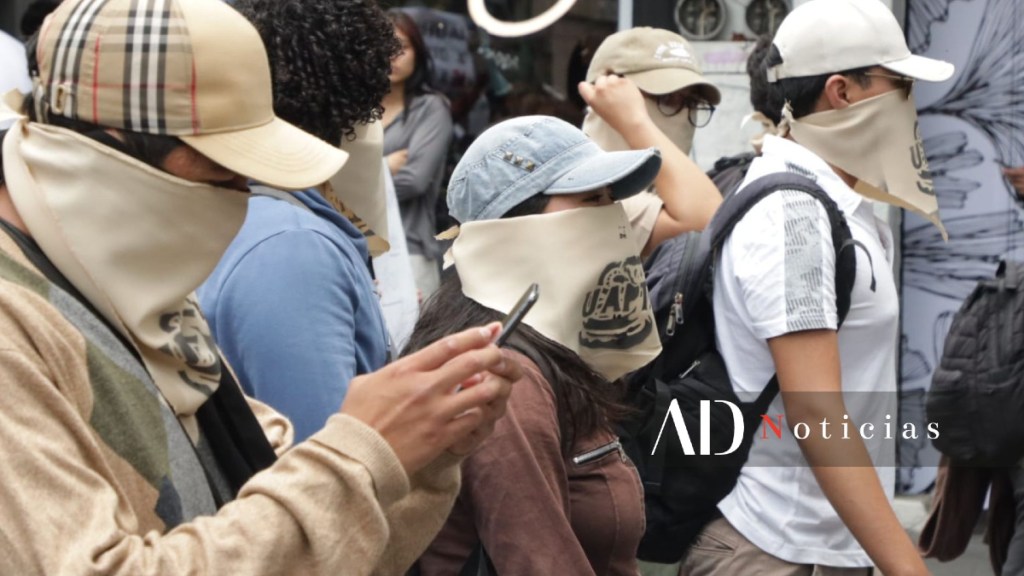 Universitarios se reúnen afuera de la Facultad de Medicina para realizar la marcha hacia el Edificio Administrativo. En el punto de encuentro ya hay más de 50 personas. Alistan sus carteles a la vez que se ponen paliacates en el rostro