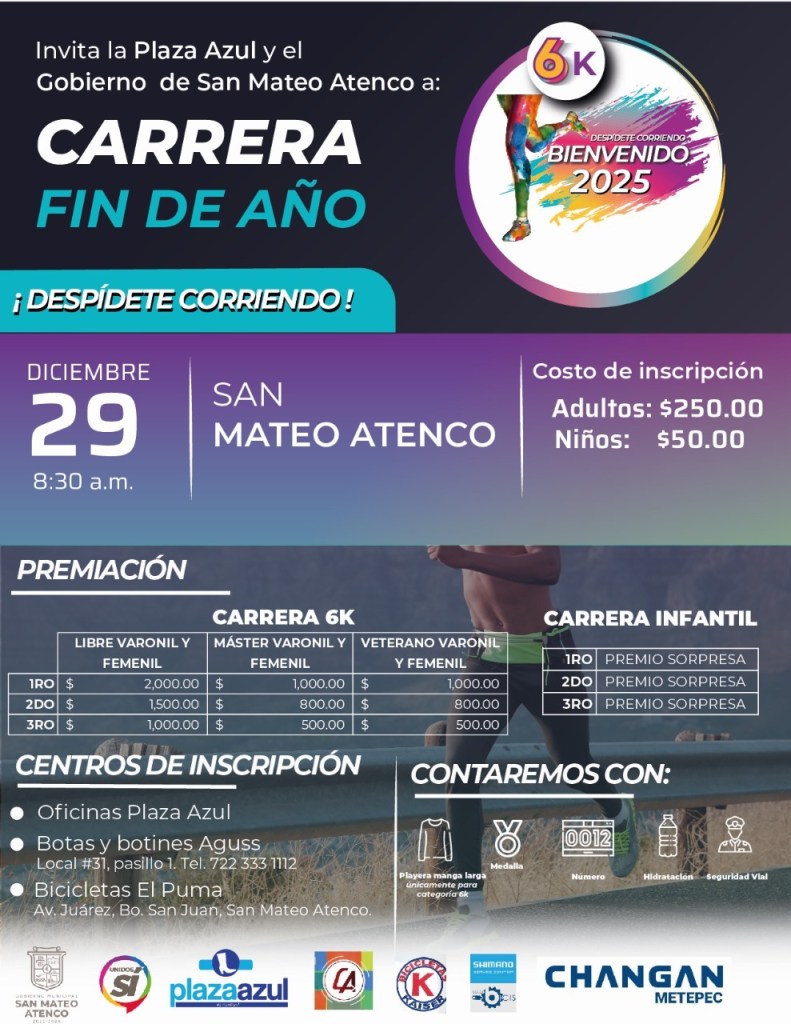 Si el deporte es tu pasión, despide el 2023 corriendo. Participa en la carrera de San Mateo Atenco el 29 de diciembre a las 8:30 o únete a un evento similar en Toluca.