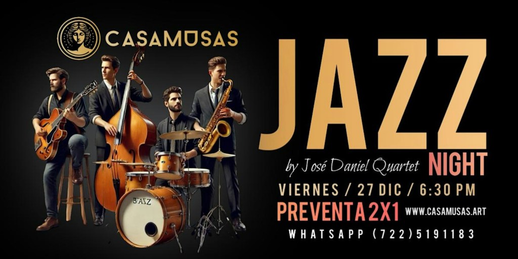 ¿Buscas un plan romántico? Casa Musas te invita a una noche mágica de jazz con José Daniel Quartet. Vive una velada inolvidable.