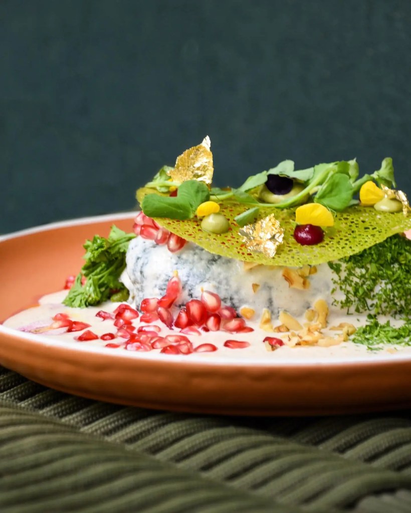 Como su concepto es vegano, el chile en nogada está relleno de zetas y el resto de sus alimentos asegura una elaboración orgánica y saludable.