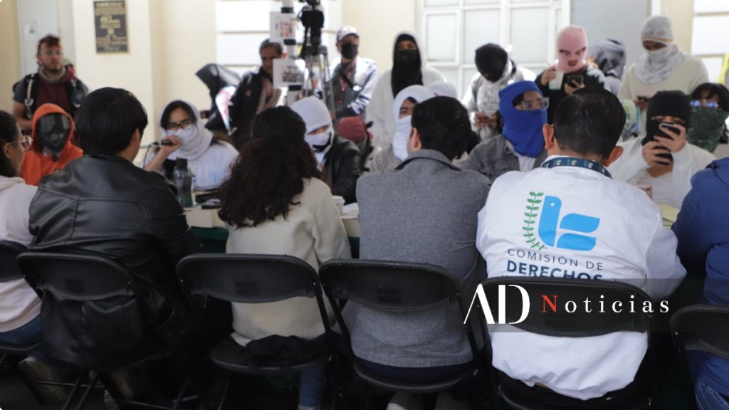 Durante la cuarta mesa de diálogo, el Enjambre Estudiantil Unificado reclamó la ausencia de una disculpa pública por parte del Secretario de Rectoría ante la presunta agr3sión a una alumna ocurrida el pasado jueves.