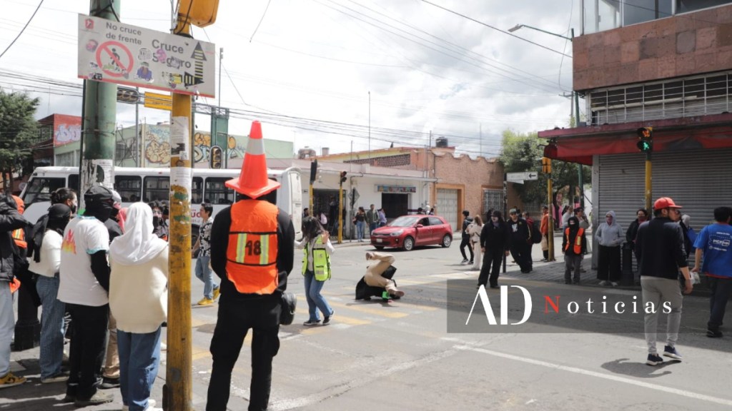 Integrantes del Enjambre Estudiantil Unificado (EEU) realizaron un performance satírico en el cruce de Instituto Literario y Juárez, en Toluca.