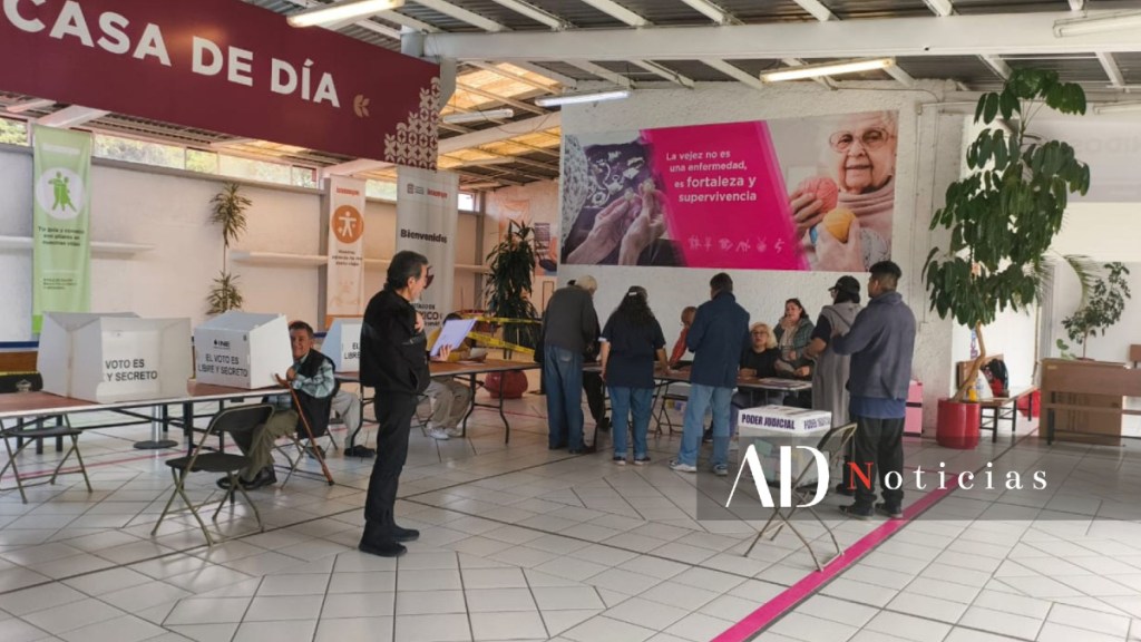 En la sección 5308, ubicada en Patio Toluca, se registra una alta afluencia de votantes durante esta jornada de elección judicial. Incluso hay personas formando fila para emitir su voto.