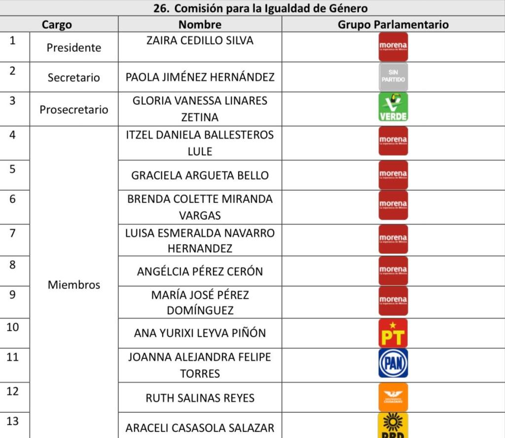Derivado de la renuncia de Paola Jiménez a las filas del tricolor, ahora el partido no contará con representante en dicha comisión legislativa, pese a que se le brindó un espacio a cada fracción parlamentaria y en el caso de Morena cuenta con siete integrantes.