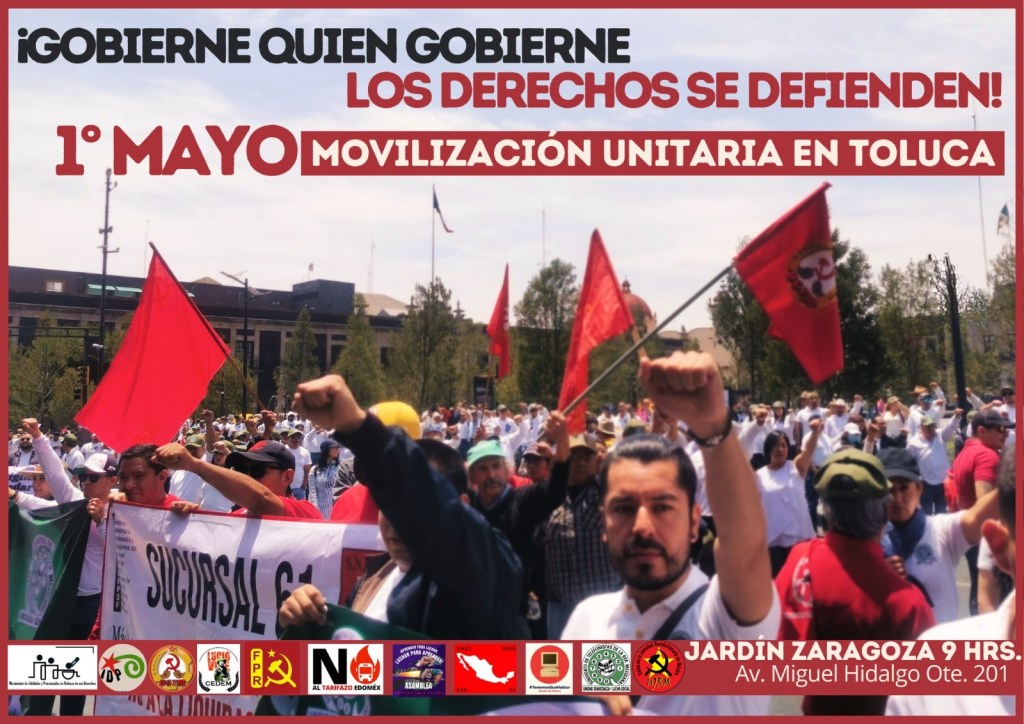Este Día del Trabajo, se llevará a cabo una movilización de trabajadores en Toluca por la defensa y ampliación de los derechos laborales. Toma tus precauciones. La convocatoria es en el Jardín Zaragoza a las 9 horas.