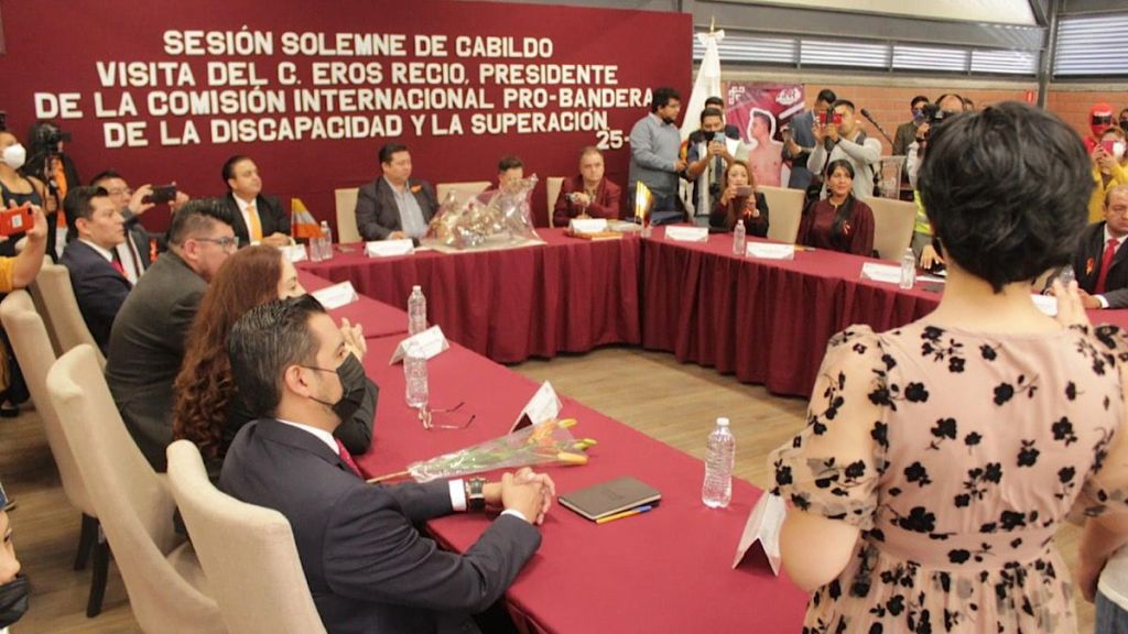 En tanto, Eros Recio, tras recibir como obsequio de parte del alcalde libros de historia del municipio escritos por el cronista local, Gilberto Vargas Arana, dio a firmar al munícipe y a los integrantes del cuerpo edilicio, un libro que lleva a todos los lugares del mundo donde acude para promover los derechos de los discapacitados, el cual también representa a las personalidades distinguidas.