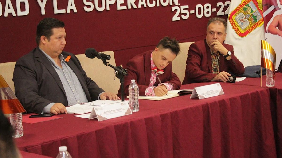 El alcalde de Nicolás Romero Armando Navarrete, recibió a Guillermo Eros Recio Peyró, representante de Buena Voluntad de la Organización de las Naciones Unidas (ONU); presidente de la Comisión Internacional Pro-bandera de la Discapacidad y la Superación; actor y primer bailarín profesional con síndrome de Down; en el marco de la Tercera Sesión Solemne de Cabildo, realizada en la Unidad Cultural y Deportiva Azquil. El invitado atestiguó que la demarcación gobernada por el presidente municipal aplica políticas públicas incluyentes en beneficio de la población que sufre algún tipo de discapacidad.