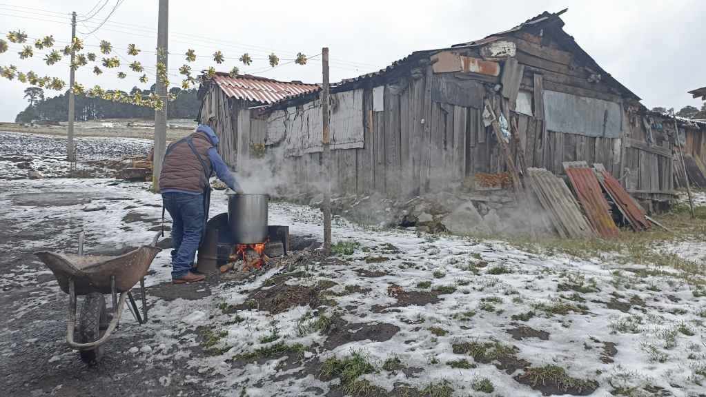 Para los pobladores de la comunidad Raíces, ubicada en las faldas del Nevado de Toluca, la llegada de la nieve implica enfrentarse al frío extremo, lo que se une a la lucha diaria por llevar comida a la mesa.