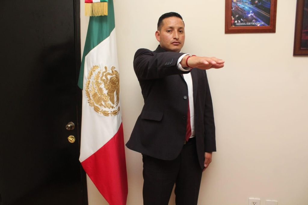Durante la Décima Tercera Sesión Extraordinaria del Ayuntamiento, Sánchez Mitre rindió protesta de ley ante el alcalde Armando Navarrete López, quien agradeció al ahora excomisario, por su labor al frente de la policía municipal.