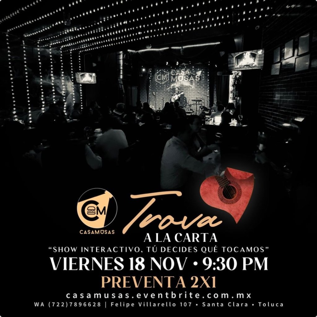 Una noche bohemia, cultural y artística, con música de Silvio Rodríguez, Joaquín Sabina, Fernando Delgadillo, Raúl Ornelas y más, te espera en Casa Musas.