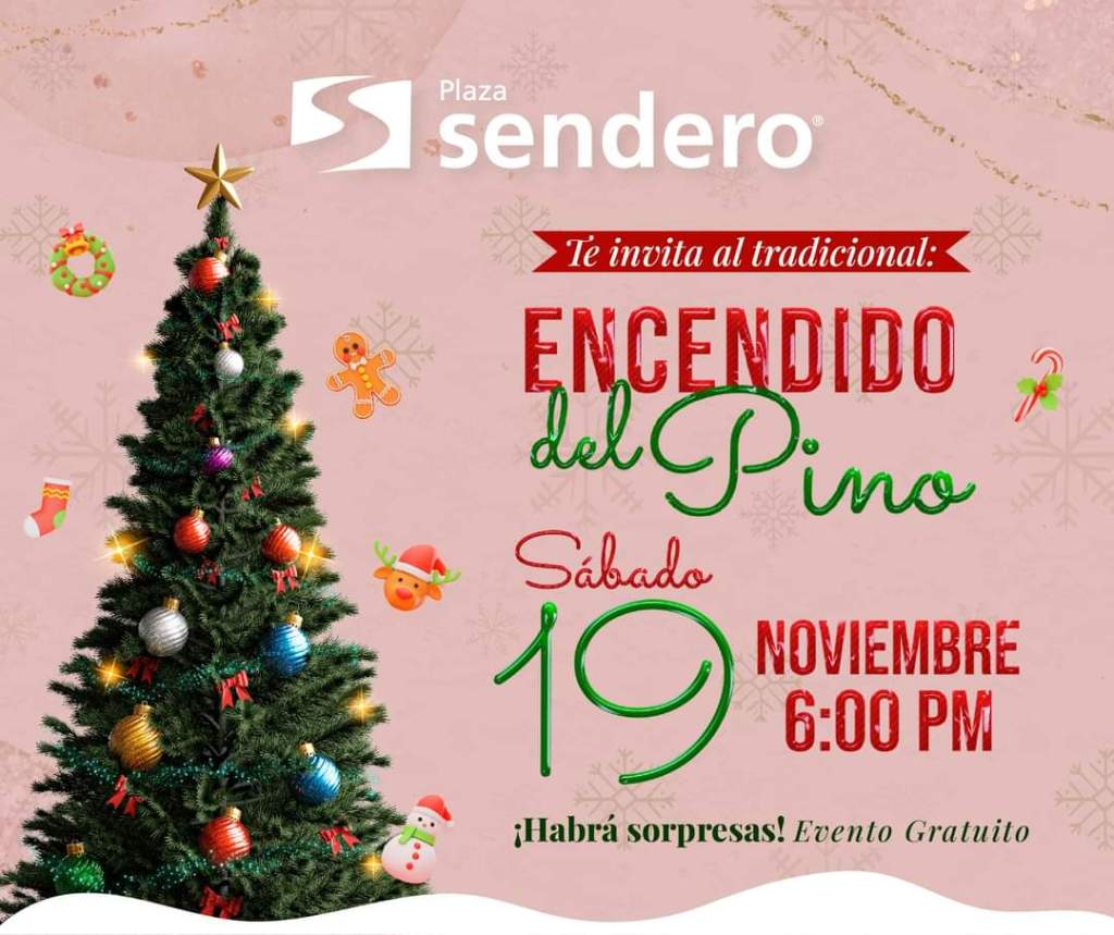 Para los amantes de la navidad, Plaza Sendero invita a su encendido de árbol este sábado, a las 6:00 p. m. El evento será gratuito.