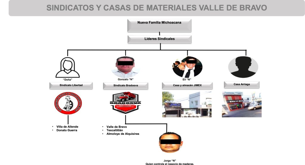 Controlaban negocios fachada como Casa de Materiales JIMEX y el sindicato “Bradosva”, responsables de comercializar arena, grava y varilla en Valle de Bravo y municipios cercanos.
