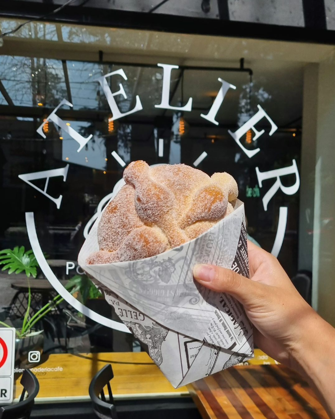 Esta panadería te ofrecerá pan de muerto hecho con masa madre. Los sabores son guayaba rosa y flor de azahar y naranja. También encontrarás rellenos de chocolate, chile mixe y cenizas de totomoxtle.