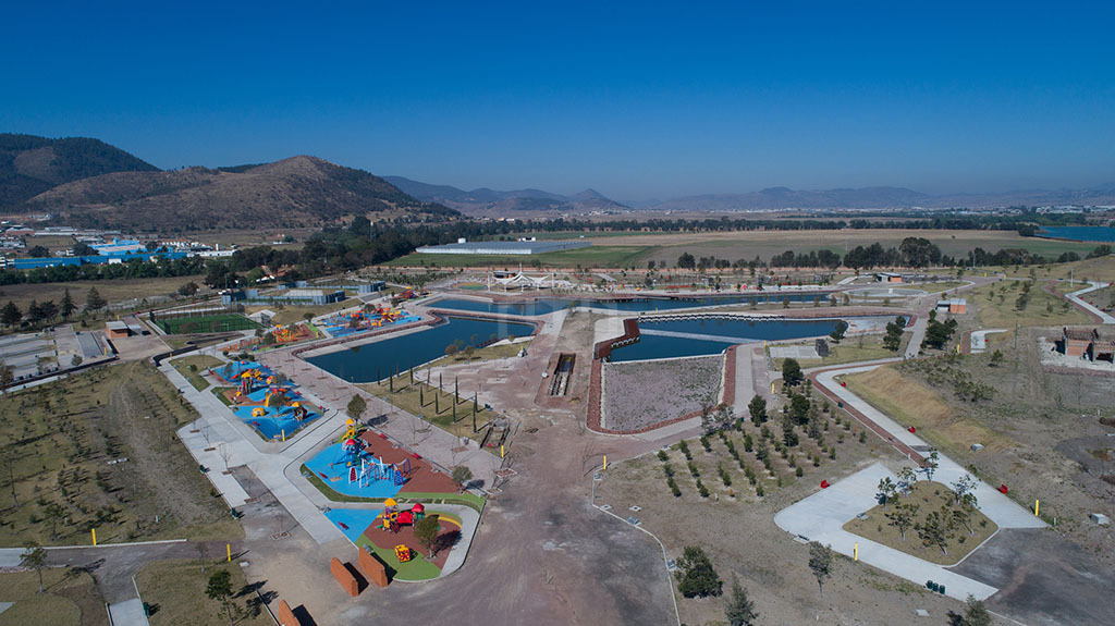 El proyecto se presentó inicialmente en 2014 como Parque Ecológico con Unidad Deportiva Atlacomulco. Consta de canchas deportivas, humedales, gimnasios y foro al aire libre, skatepark, áreas de juegos infantiles y ciclopista. Además de tres cuerpos de agua intercomunicados subterráneamente que forman el lago. Este funciona como vaso de captación pluvial para alimentar la planta de bombeo del sistema de riego en las zonas verdes.