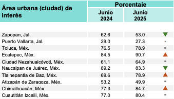 Según la Encuesta Nacional de Seguridad Pública Urbana (ENSU), publicada por el INEGI en junio, cinco de las ocho ciudades mexiquenses incluidas en el estudio reportaron un incremento en el porcentaje de personas que consideran inseguro vivir en su ciudad. En Ecatepec, la percepción de inseguridad pasó de 85.0 % en marzo a 90.7 % en junio; en Tlalnepantla de Baz aumentó de 74.2 % a 78.9 %; y en Nezahualcóyotl subió de 60.8 % a 64.9 %. Solo Atizapán de Zaragoza logró mantenerse por debajo del promedio nacional, con una tasa de 49.9 %.