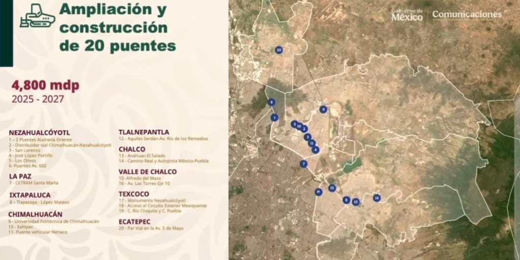 Además, se repavimentarán vialidades y se construirán 20 nuevos puentes. La Secretaría de Infraestructura entregará un tren de pavimentación para apoyar a los municipios.