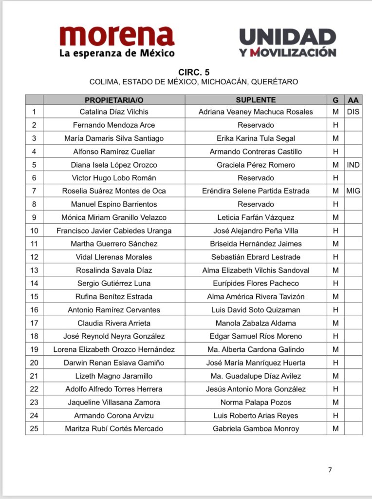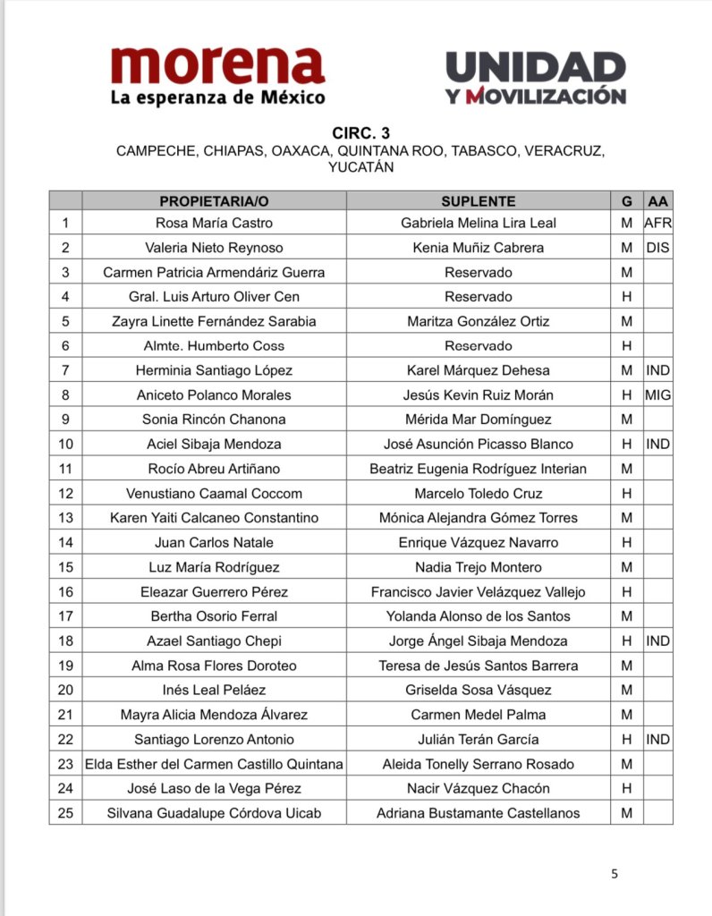 - Ricardo Monreal – Lidera la lista, con su suplente aún sin revelar.