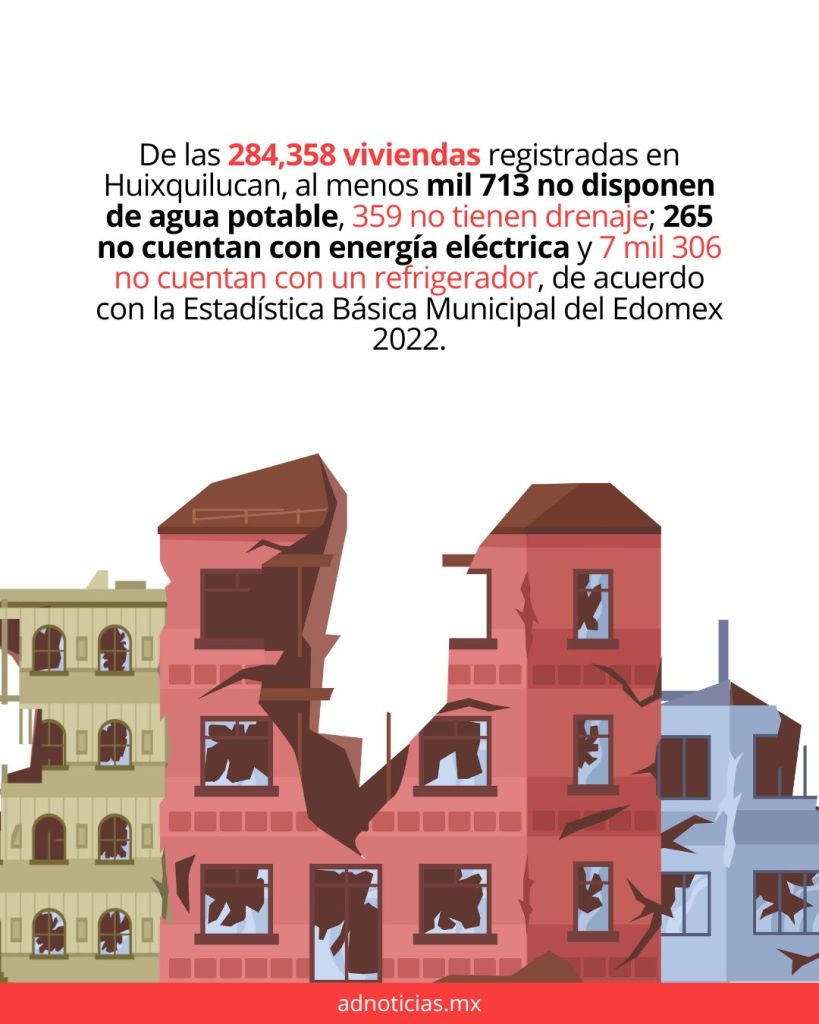 De las 284,358 viviendas registradas en Huixquilucan, al menos mil 713 no disponen de agua potable, 359 no tienen drenaje; 265 no cuentan con energía eléctrica y 7 mil 306 no tienen un refrigerador, de acuerdo con la Estadística Básica Municipal del Edomex 2022. No se trata solo de números: son vidas atrapadas entre el abandono institucional y la precariedad cotidiana. En un municipio que presume zonas de alta plusvalía como Interlomas, Bosque Real o La Herradura, hay colonias donde el acceso al agua o mantener alimentos en buen estado no es una posibilidad.