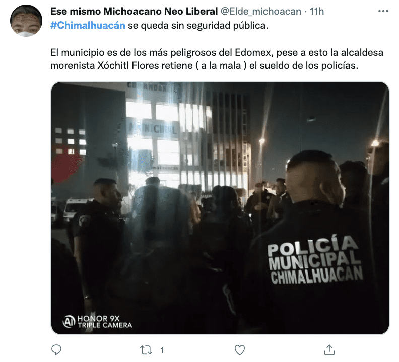 #Chimalhuacán pasa hacer un municipio inseguro, ya que el actual gobierno morenista redujo el salario a los uniformados y despidió a otros por el simple hecho de no querer pagar su labor.