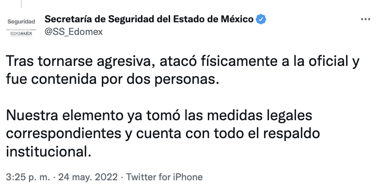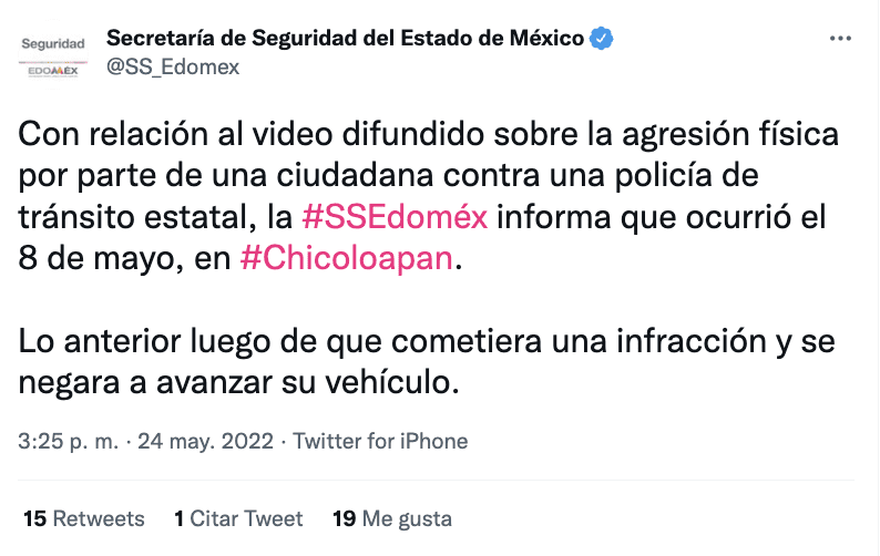 La Secretaría de Seguridad del Estado de México informó por medio de sus redes sociales que los hechos se trataba de algo ocurrido el pasado 8 de mayo en el municipio de Chicoloapan.