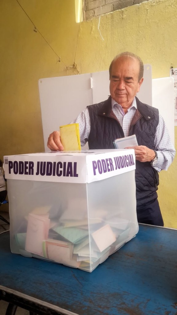 Jorge Olvera García ejercitó su voto en la ENSE (Col. Morelos, Toluca). Destacó que «Este proceso acerca la justicia a la gente»