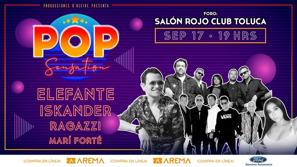 Pop Sensation será una experiencia para vivir los grandes éxitos de grupos como Elefante, Iskander, Ragazzi y Mai Fonté presentarán lo mejor del pop en tierras toluqueñas.