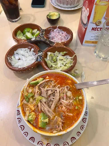 Esta pozolera y antojera mexicana tiene en su menú pozole tanto rojo como blanco y puedes escoger entre maciza de cerdo, cabeza de cerdo, surtido o pollo para disfrutar de un platillo que promete deleitar tus sentidos.