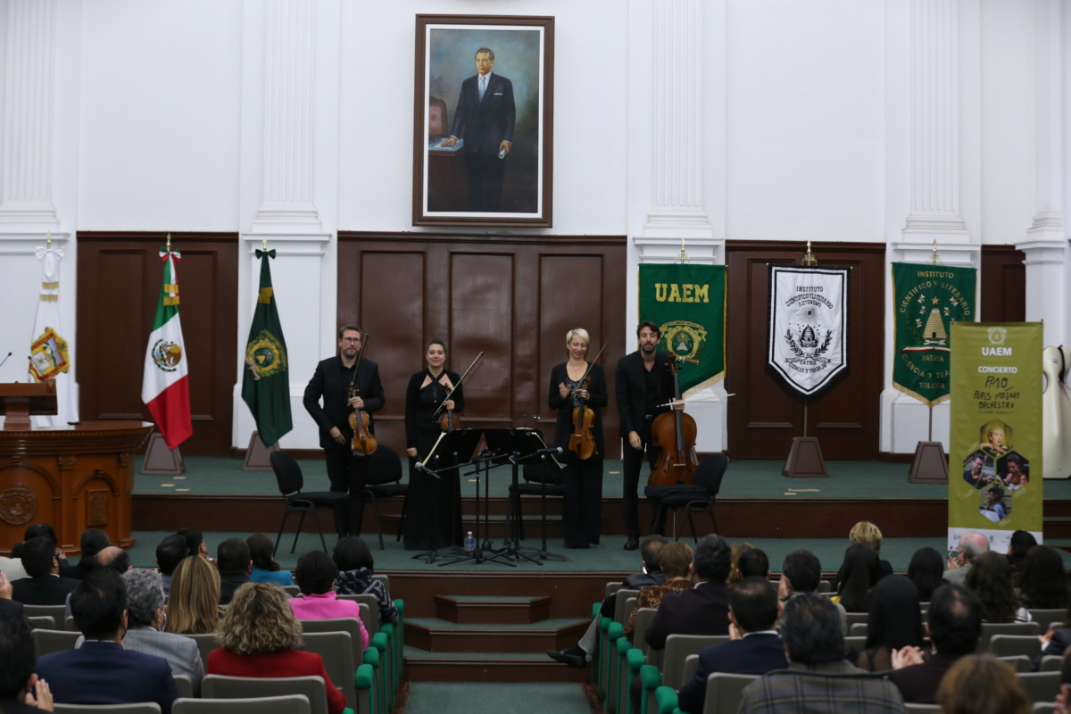 Más tarde, el Aula Magna “Lic. Adolfo López Mateos” del Edificio de Rectoría fue sede del concierto que la Paris Mozart Orchestra otorgó a la comunidad universitaria en el que la agrupación francesa interpretó obras de maestros de la música clásica como Wolfgang Amadeus Mozart y Ludwig van Beethoven.