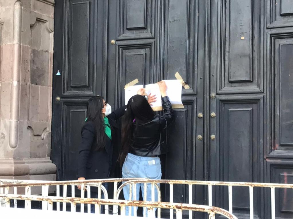En el marco del 8M, las mujeres acudieron al Congreso, sin embargo, al estar cercadas y cerradas las instalaciones pegaron en las puertas principales el proyecto de decreto como un acto simbólico.